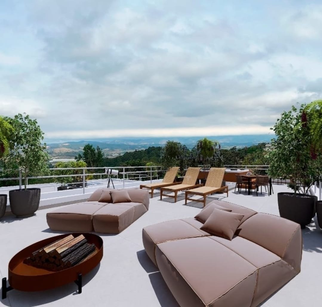 O rooftop, do tamanho da casa, oferece jacuzzi para 6 com vista 360° para montanhas, bosques e horizonte. A piscina de borda infinita complementa o espaço gourmet, enquanto as 4 suítes (1 no térreo, 3 no andar superior com closets, varandas e banheiros com teto solar) incluem a master com quintal privativo e banheiro spa. A área social integrada, com cozinha com ilha, sala para 12 e home office, explora a vista. Esta casa com piscina Santa Isabel é perfeita para quem busca sofisticação.